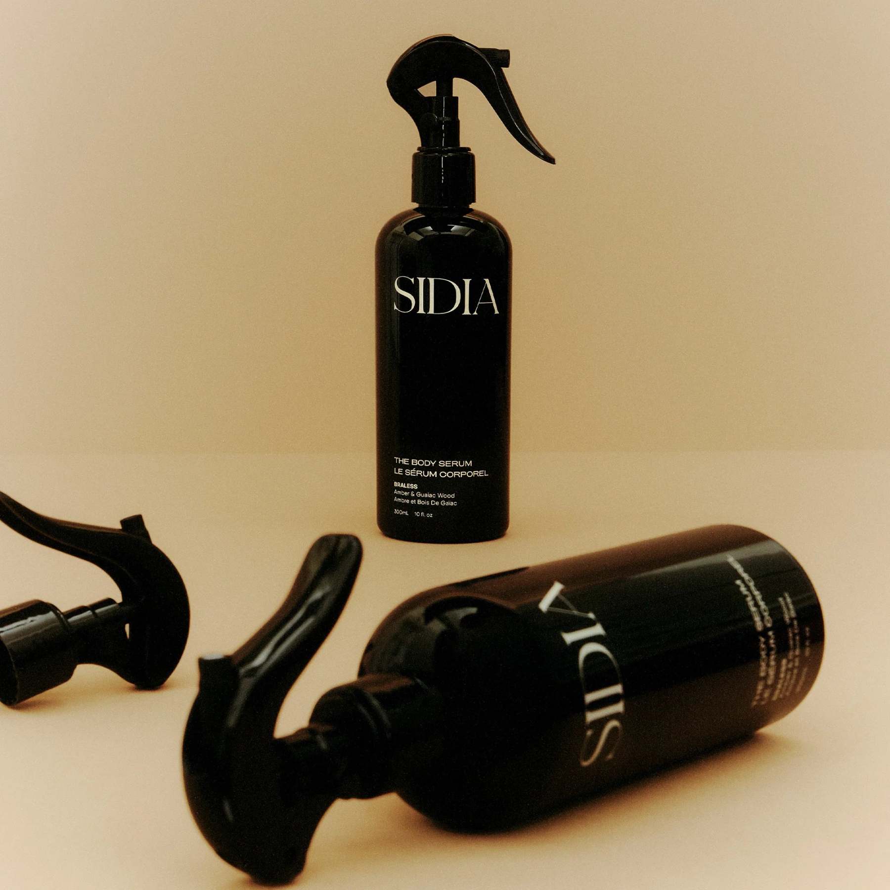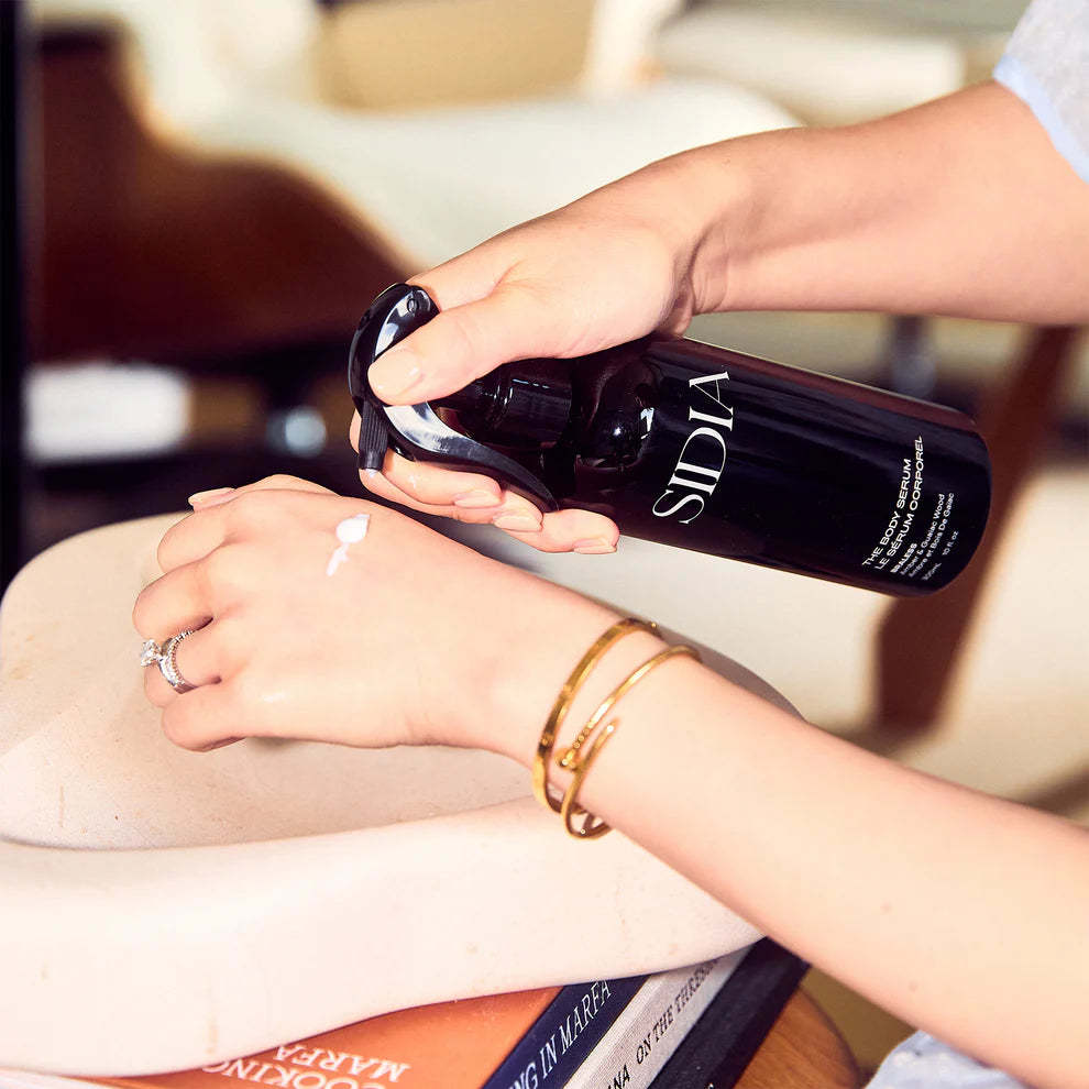SIDIA's award-winning BRALESS Body Serum is a lightweight and fast-absorbing formula housed in a unique spray bottle for effortless, no excuses application and hydration.