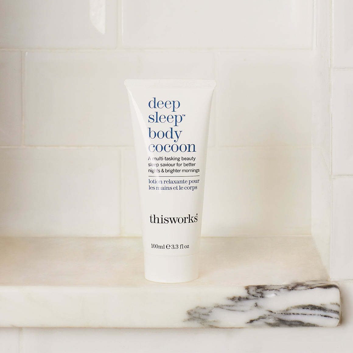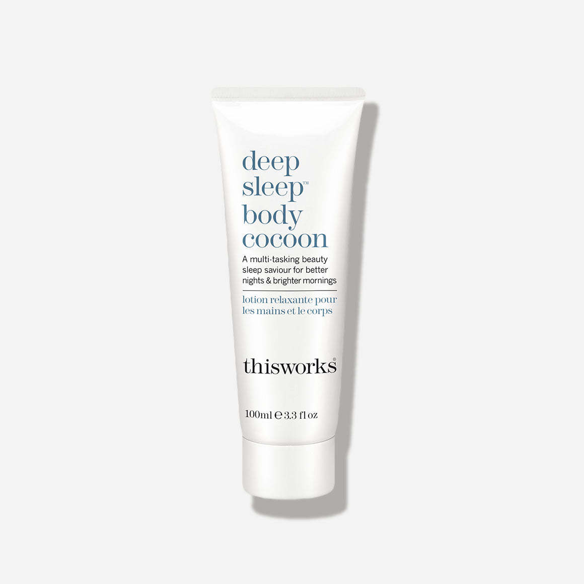 Transform your bedtime routine with This Works Deep Sleep Body Cocoon, a luxurious body cream designed to help you unwind and promote restful sleep. Formulated with a calming blend of lavender, chamomile, and vetiver, this nourishing body lotion deeply hydrates the skin while calming the mind. Perfect for those who struggle with sleep or seek to enhance their nightly ritual, the silky texture absorbs easily into the skin, leaving it soft, smooth, and subtly scented.