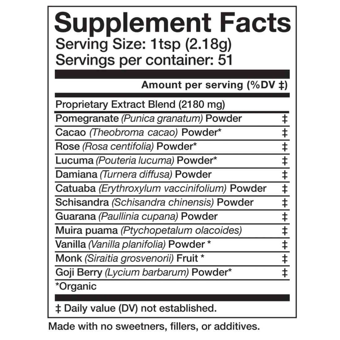 This uplifting herbal formula is crafted with potent aphrodisiacs and mood-enhancing plants traditionally used to nourish the reproductive system, ease stress, and soothe the nervous system.* Featuring revered herbs from Central America and the Amazon—regions rich in botanical wisdom—it’s designed to awaken the senses, support emotional well-being, and elevate the spirit with every dose.*