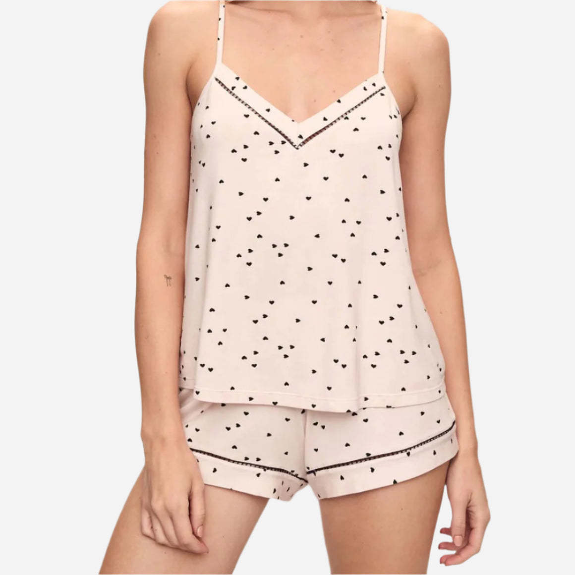 You’re set for comfort. Made from buttery soft TENCEL™ Modal fibers and a touch of Elastane for stretch and recovery, this fabric is verified by OEKO-TEX® Standard 100, which means it was processed without harmful chemicals. The relaxed-fit cami features a flattering V-front and back with delicate ladder cotton trim along the neckline, while the adjustable straps provide a customized fit. Paired with low-rise cheeky shorts, complete with an elastic waistband and matching ladder trim at the hem, this duo is as comfy as it is stylish.