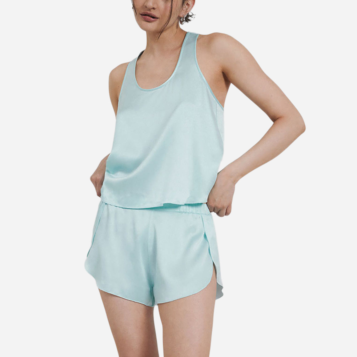The set they're talking about when they say, "get your beauty sleep." Made with a flattering tulip racer back design and matching mid-rise bottoms with tulip hemming, you’ll feel extra flowy and breezy (aka, it’s made to move with every sleep position). Constructed of 100% Mulberry Washable Silk with naturally thermoregulating properties, you’re channeling that “not too hot, not to cold” kinda perfection.